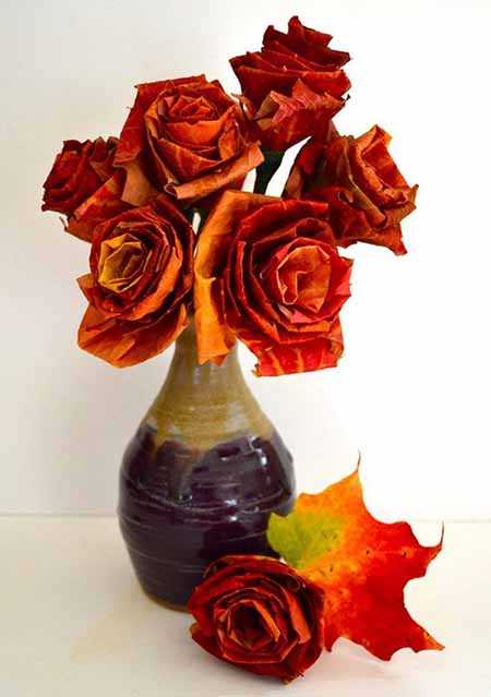 Кленовые розы своими руками – красивый и уникальный подарок. Сушить листья для этой работы не нужно. На поиски материала отправляйтесь в хорошую погоду.