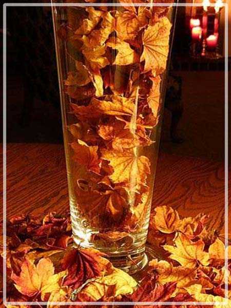 Для этого нужно наполнить вазу листьями и залить холодным раствором глицерина (1:1). Листья нужно выбирать ровными, не скрученными.