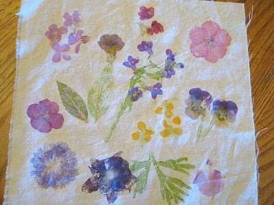 Положите ткань на твердую поверхность, сверху на ней составьте по своему усмотрению композицию из листьев и цветов. Накройте все полиэтиленом. Теперь вам надо тщательно отбить листья и цветы молоточком, чтобы они окрасили своим соком ткань. Получившуюся цветную ткань можно использовать для изготовления различных поделок, например, салфеток, подушек и т.п. Отбивать растения можно также на бумаге, из которой потом получаются красивые открытки.