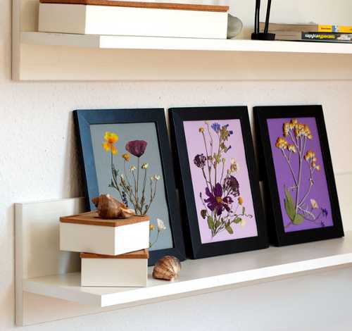 Все знают о самом простом способе засушить цветы и листья растений — положить их под пресс, например, под толстую стопку книг. Из высушенных цветов можно создавать целые композиции, украшать ими самодельные открытки, закладки для книг. Приклеить листья и цветы к бумаге или картону можно универсальным клеем ПВА.