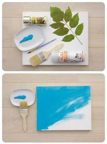 4. Наклейте веточки и листочки на холст при помощи клеевого пистолета.