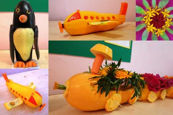 P.S. Посмотрите, какие красивые поделки из овощей и осенних цветов сделали другие ребята вместе с родителями. Все части крепятся на зубочистках.