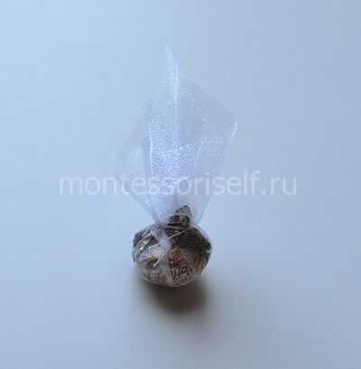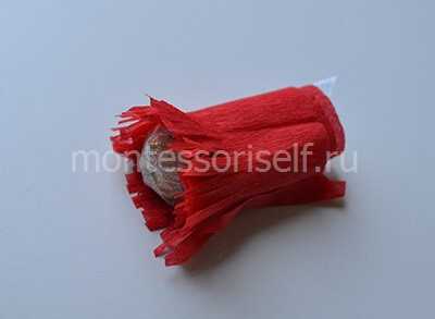 Оборачиваем ей покрытую белой сеткой конфету – так, чтобы белые края смотрели вниз, в противоположную бахроме сторону.