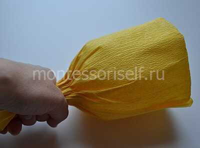 А теперь отрываем небольшой кусочек гофрированной бумаги и сминаем его в комок.