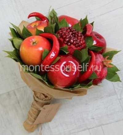 Еще один замечательный вариант исполнения осеннего букета — букет из яблок.