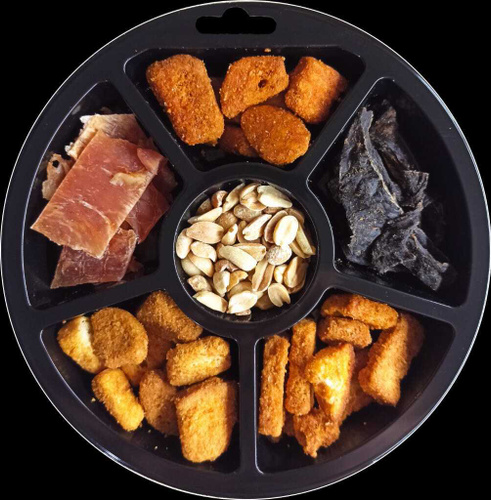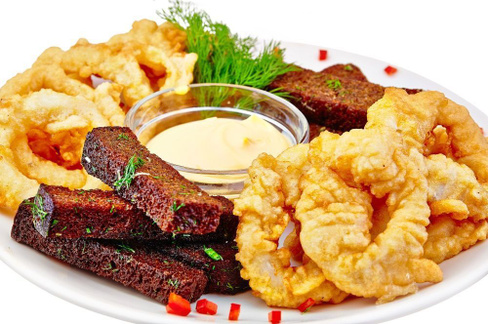 Выкладываем приготовленные закуски на блюдо и подаем с пивом к столу. Приятного аппетита!