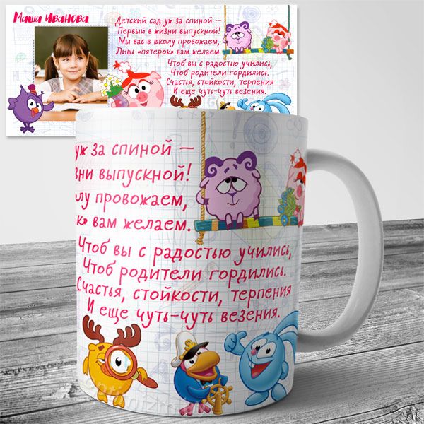 - торт — родители могут приобрести его в разном оформлении. Чаще всего кондитеры пишут имена всех детей или украшают по теме прощания с детским садом;