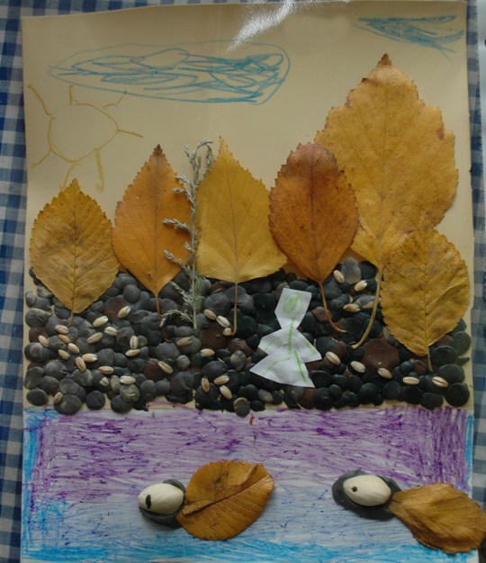 Цель: обучение детей правильному составлению композиции из природного материала с подборкой цветовой гаммы.