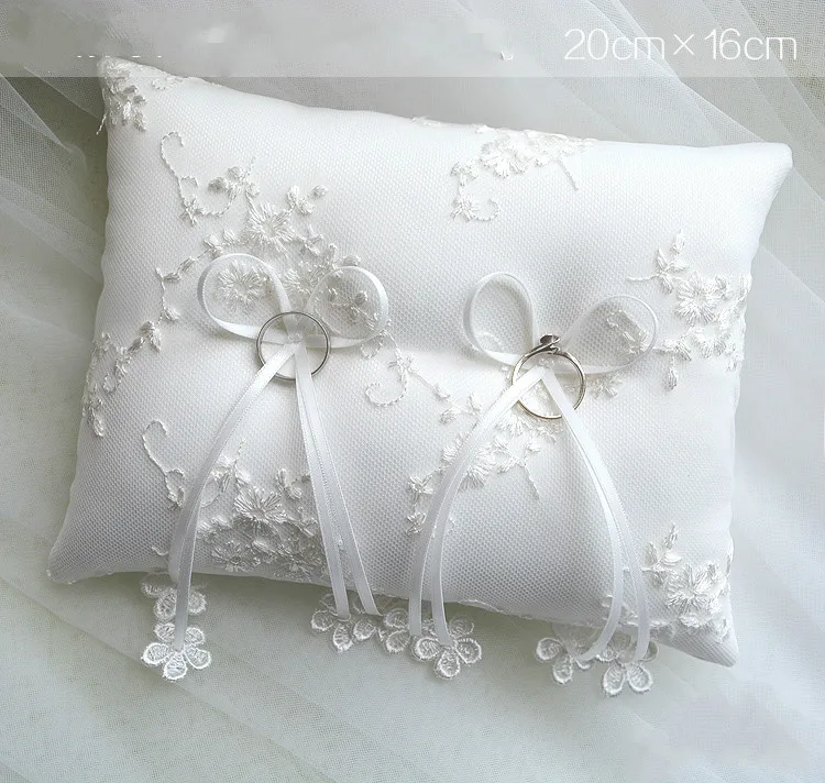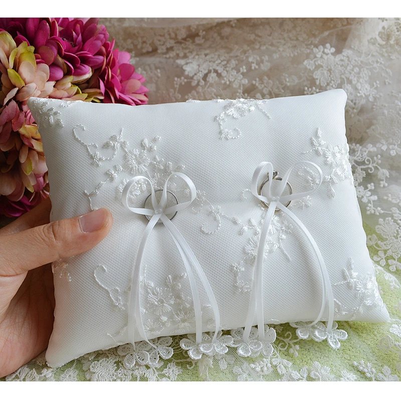 - Квадратная свадебная подушка для колец с наволочкой из атласных лент