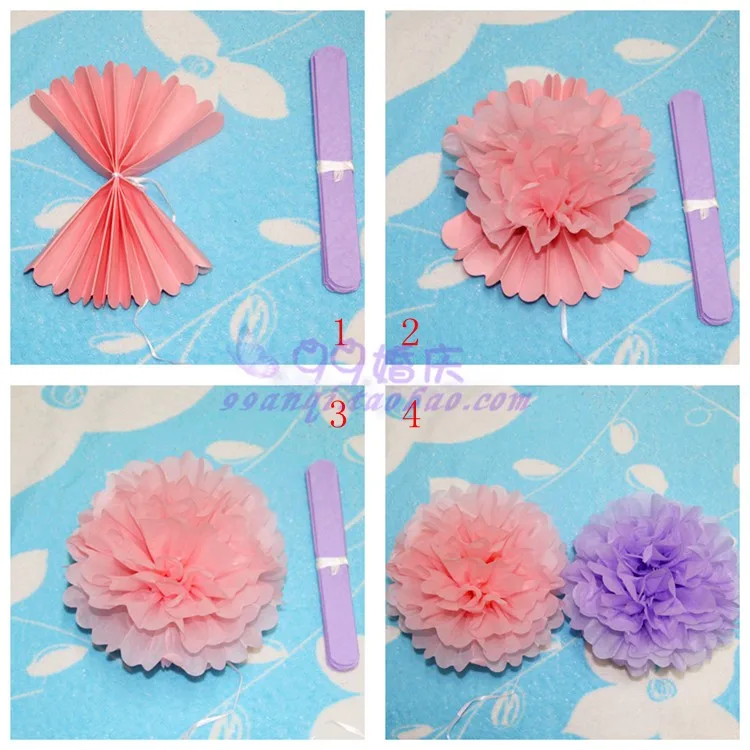 Можно найти декор в магазине, но многие предпочитают сделать его самостоятельно. Два главных правила при изготовлении декора из бумаги тишью: работать нужно чистыми сухими руками и не торопиться, так как тонкая папиросная бумага легко рвется.