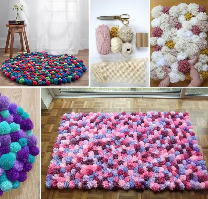 - Чтобы добавить помпоны к одеялу: Положите одеяло на пол и расположите каждый помпон по периметру.