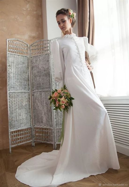 Они часто бывают с длинными рукавами и длиной до пола, чтобы прикрыть локти и колени невесты.