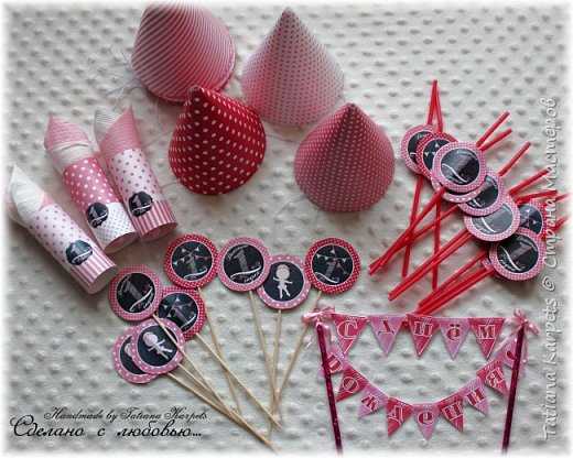 — Для оформления стола и украшения гостей, я сделала колпачки, топперы, трубочки для напитков, рулончики для салфеток и растяжку на торт.