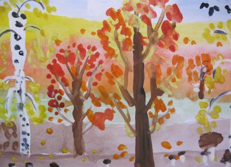 Детские рисунки на тему осень красками. Как нарисовать красивый осенний пейзаж природы карандашом и красками поэтапно для начинающих? Как нарисовать лёгкий осенний пейзаж карандашом для начинающих? Готовые работы на тему «Осенний пейзаж» фото
