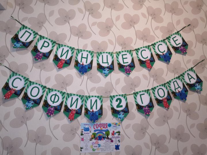 Использовать следует вырезки из фантиков, объемные наклейки или же распечатанные картинки. Финальное действие — нанизывание заготовок в нужной последовательности на шнурок. Такую растяжку следует вешать на однотонную стену, чтобы надпись хорошо читалась.