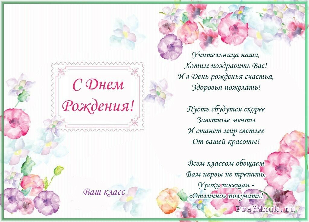 С днем рождения учителю Открытки с Днем Рождения Открытки. Красивые поздравительные открытки 2019, гифки, картинки и анимация с днем рождения, мерцающие и блестящие открытки, с юбилеем, с пожеланиями, с надписями, со стихами, свадебные, именные, а также к любому празднику. Пожелание с днем рождения pozdravok.Ru. Заходите в нашу рубрику Пожелания подруге на день рождения. Проявите фантазию, придумайте в ее честь красивый тост, подарите ей прекрасные комплименты, осыпьте замечательными словами. Поздравление с днем рождения учителю своими словами. Поздравление с днем рождения учителю своими словами Поздравляем с днем рождения любимую учительницу! С наилучшими пожеланиями в этот праздничный день. Пожелания мужчине на день рождения стихи красивые, мудрые. More Пожелания На День Рождения images.