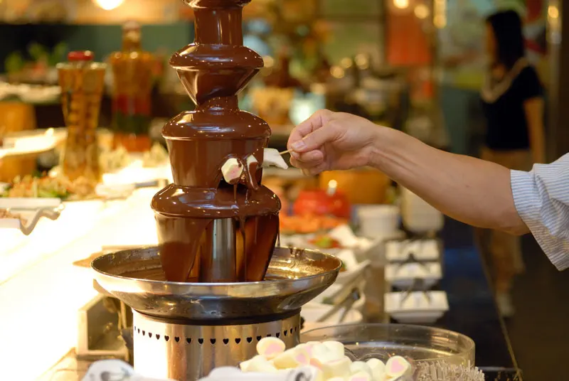Стоит ли покупать шоколадный фонтан на торжество? Домашние потребители вполне могут купить шоколадные фонтаны, но фонтаны хорошего качества могут быть дорогими. Пытаться сократить расходы, покупая дешевую модель, просто «разумно копейки, глупо фунты», как гласит старая поговорка; вы только разочаруетесь или потратите больше денег в долгосрочной перспективе. Подумайте о количестве гостей, которое у вас будет (от этого будет зависеть размер фонтана, а также количество шоколада, которое вам понадобится). Часто ли вы устраиваете собрания с одинаковым количеством людей? Готовы ли вы тщательно очищать свой шоколадный фонтан после каждого использования? Если ответ на любой вопрос «вероятно, нет», возможно, лучше арендовать шоколадный фонтан, что в последние годы стало значительно проще благодаря популярности этих предметов.