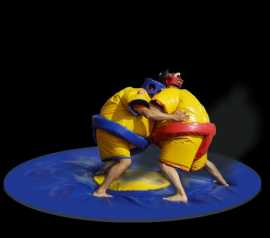 Любите активный отдых, пробовать что-то интересное и неизведанное? Тогда интерактив «Сумо» именно для Вас. Сумо — это вид единоборств, в котором два борца выявляют сильнейшего на круглой площадке. Этот вид спорта происходит из Японии и считается одним из видов боевых искусств. Для того, чтобы побывать сумоистом, необязательно ходить на изнурительные тренировки и набирать вес. Достаточно заказать на праздник интерактивную программу «Сумо». Интересное и веселое занятие развеселит Вас и Ваших гостей и замечательно подойдет, как на детский праздник (от 12 лет), так и на взрослый.