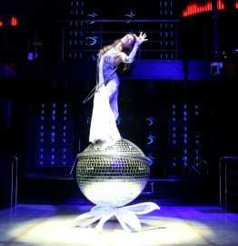 Номер «Девушка на шаре» способен стать эффектным украшением любого праздничного мероприятия. Артистка, выступающая на крутящемся вокруг своей оси зеркальном шаре, сочетает танец с невероятным вращением обручей, используя элементы акробатики, эквилибра и пластического этюда.