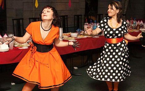 В центре полукруга из гостей расположено кресло, украшенное платками, цветами — именно это место занимает под музыку именинница, все гости скандируют «Поздравляем!», взрываются шары с фольгой.