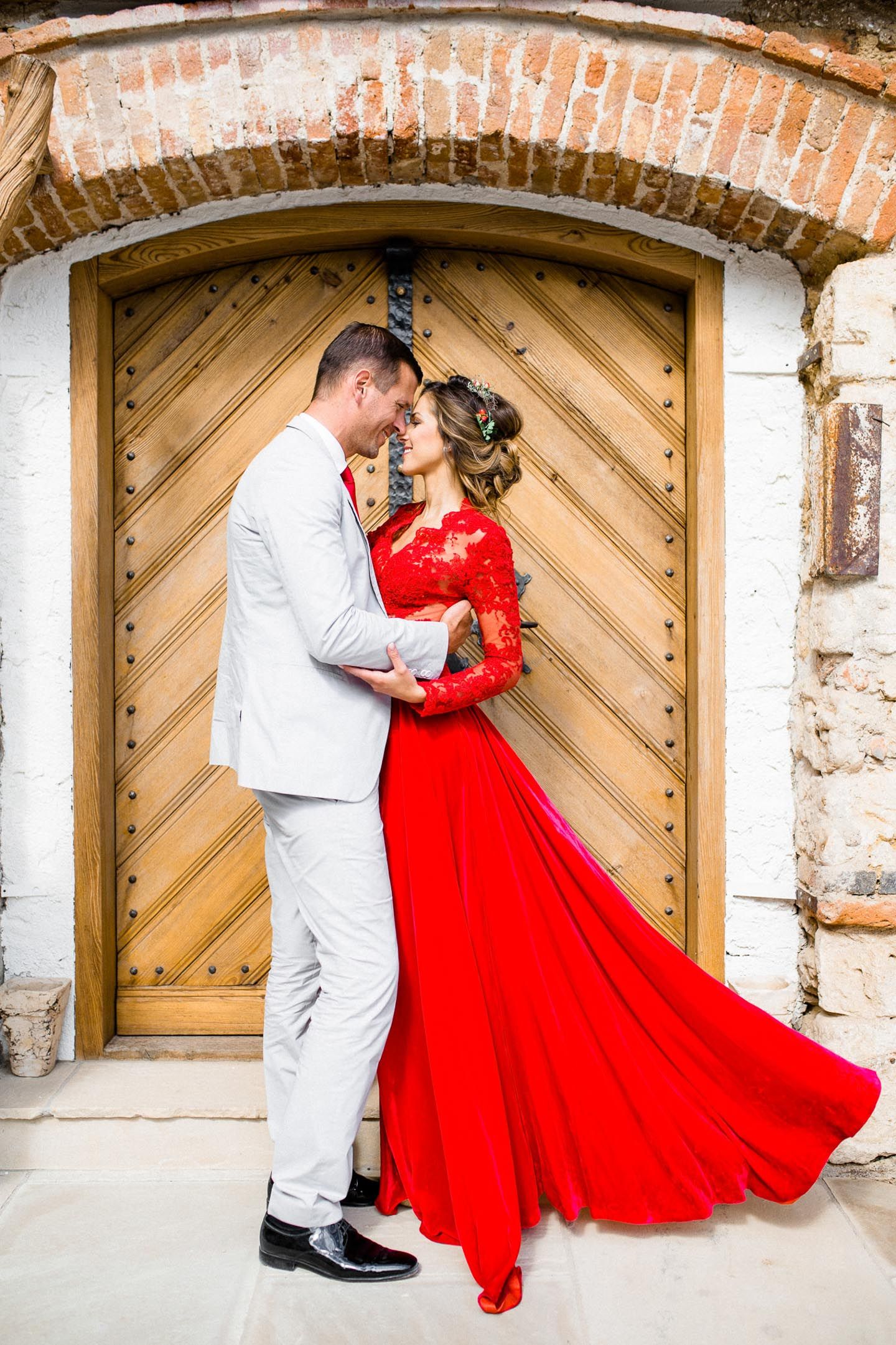 Красно-белый цвет в образах невесты и жениха