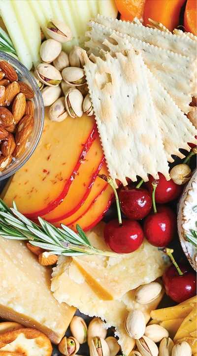 Всегда можно добавить к нарезке сыров помидорки черри, маслины или оливки, а еще – практически любые виды сухофруктов, чтобы получилась закуска, как на ресторанных фото.
