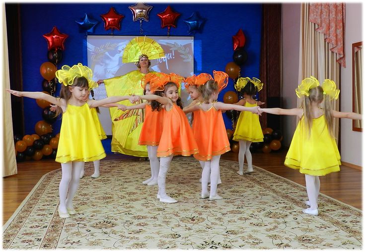 Для средней группы можно подобрать танцы чуть посложнее – как хороводные, в которых участвуют все дети, так и сольные номера или исполнение танцевальной миниатюры с участием 3-5 детей.