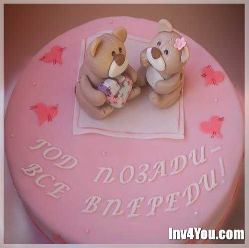 Торт на первую годовщину свадьбы можно украсить такими надписями, как: «Год позади — все впереди!», «Все только начинается!», «…+… = Любовь!» (где точки — это имена пары), «1 год под одним одеялом», «Нашей семье 1 год».