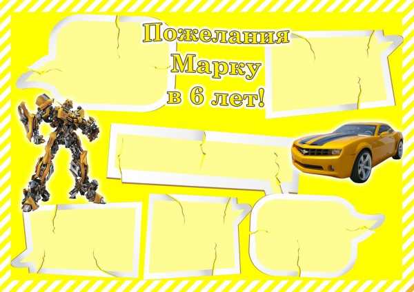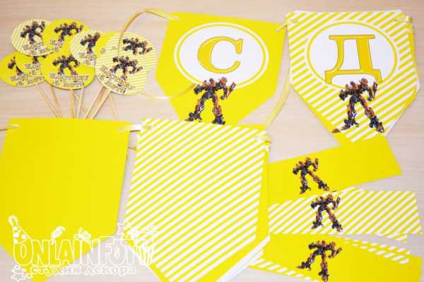 Желто — полосатое оформление с Бамблби можно заказать в электронном, собранном и в распечатанном виде. Высылаем по всей России. Для заказа пишите на эл. почту [email protected]