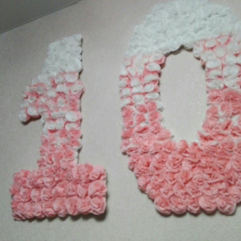 Объёмные цифры ручной работы. Основа — картон, цветы из салфеток. Высота 50 см, ширина 40 см, толщина 10 см. Цена за обе цифры.