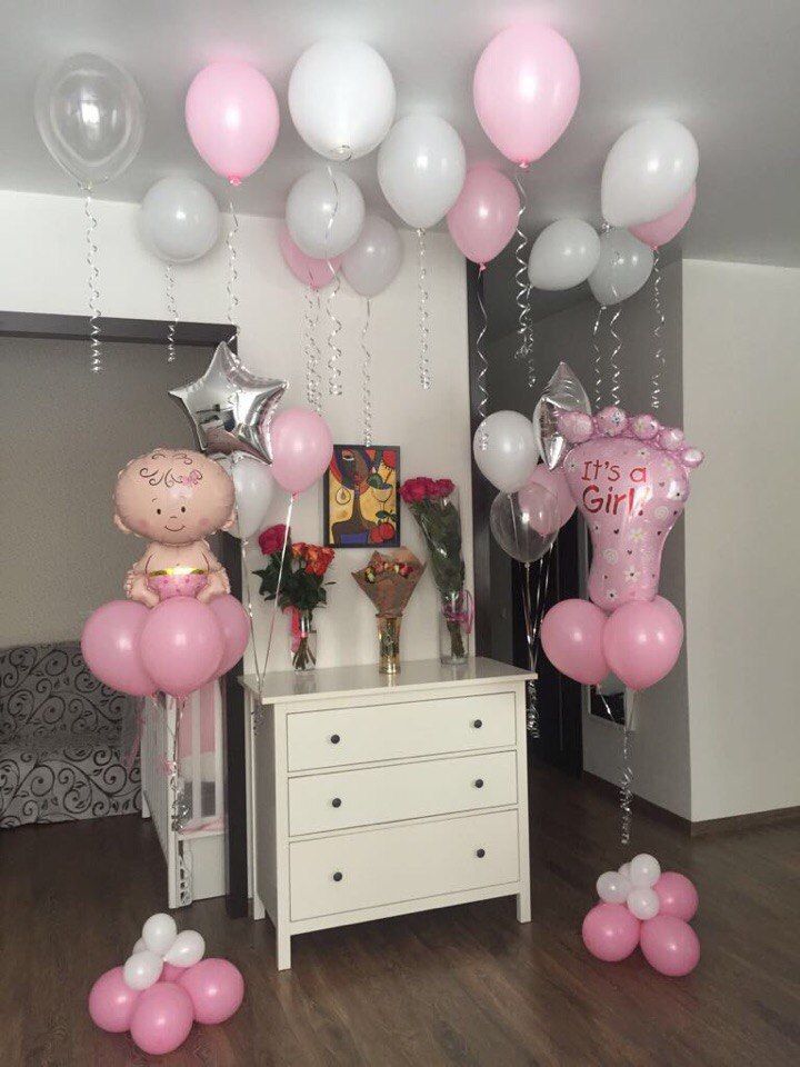 Украсить комнату шарами встреча с роддома девочка