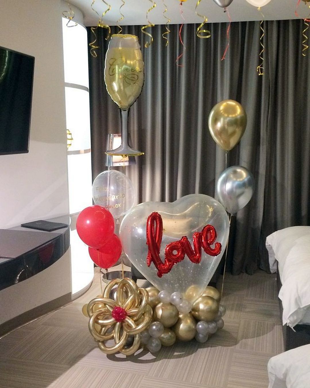 Все в день свадьбы требует праздника, включая подготовку в номере для новобрачных. Удивите будущую невесту специальным баннером из воздушных шаров с надписью «невеста», «будущая миссис» или их новой фамилией для особого прикосновения. Надуйте несколько воздушных шаров, которые соответствуют цветовой гамме свадьбы, чтобы получить особую возможность сфотографироваться с невестой.