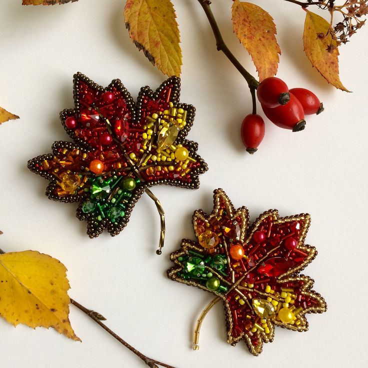 Кленовые листья выполнены из полимерной пластики, тонированы акрилом. Отпечаток настоящего листа. Изделия дополнены чешскими бусинами и натуральными камнями.