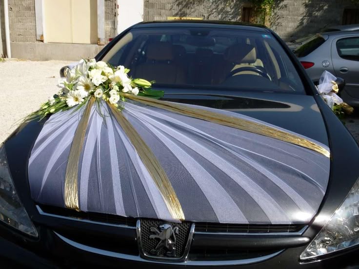 - Шелковые цветы или Живые цветы . Использование живых цветов — самый традиционный способ украсить свадебную машину.