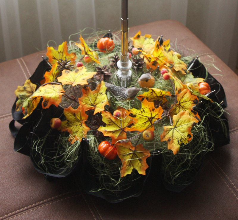 В конце концов, замечательную поделку осеннего зонта можно сделать уже и из готового зонтика, украсив его по осенней тематике и по своему усмотрению. Так что творите и пробуйте – все варианты поделок хороши, если сделаны с любовью и старанием.