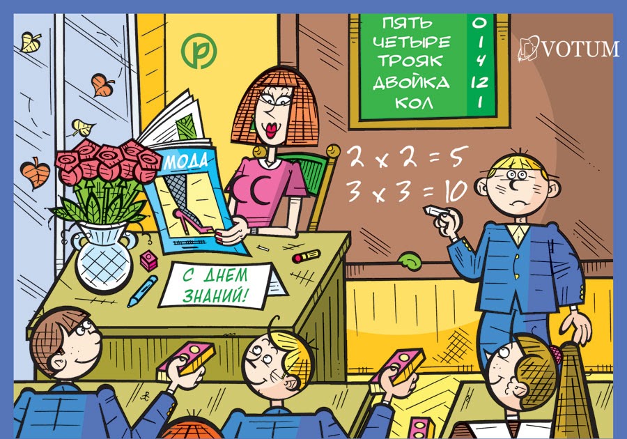 Учитель: Школьники – народ веселый, компанейский и не упустит повода пошутить, разыграть друг друга и своих учителей, от души повеселиться, особенно в светлый праздник Дня Учителя. И пусть этому веселью поспособствуют веселые уроки, которые состоятся через несколько минут. Система оценивания тоже «просится» быть необычной. Пускай знания и умения оцениваются по пятибалльной шкале приколов (т.е. конфеток, шоколадок, канц. товаров – скрепок, кнопок, карандашей и т.д.)За каждое выполненное задание участники получают соответствующее их количество. Самые успешные «ученики» получат звание «Приколист 20..». Расписание прикольных уроков следующее: 1. Русский язык. 2. Математика 3. Иностранный язык 4. Музыка 5. История
