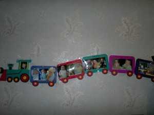 Итак, в первую очередь, пришедшие гости не могли пройти мимо поезда, занявшего пол стены. Вагоновожатым паровоза был именинник. Поезд состоял из пяти вагонов, на которых были размещены фотографии сынишки с рождения и до сегодняшнего дня.