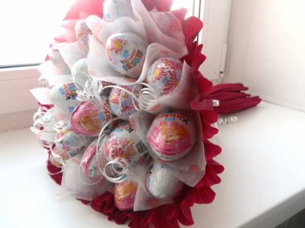 - Композиция из живых цветов. Придумайте что-то интересное и оригинальное, дополнив композицию любимыми конфетами, фруктами, а лучше кольцом с бриллиантом.