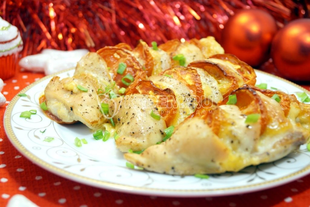 - Ананасы пропитают мясо своим соком. Розмарин придаст карманам пикантности. Сверху блюдо будет с румяной сырной корочкой. Подавать на праздничный стол в горячем виде порционными кусками.