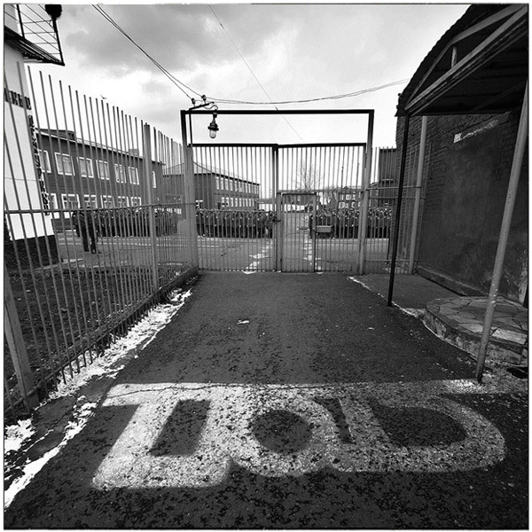 Eingang mit Gedenksteinschild zum Dora-Observatorium und Beobachtungsposten für die Beobachtung des nordkoreanischen Propagandadorfes in der koreanischen entmilitarisierten Zone (DMZ). Паю, Южная Корея, март 2013 г.