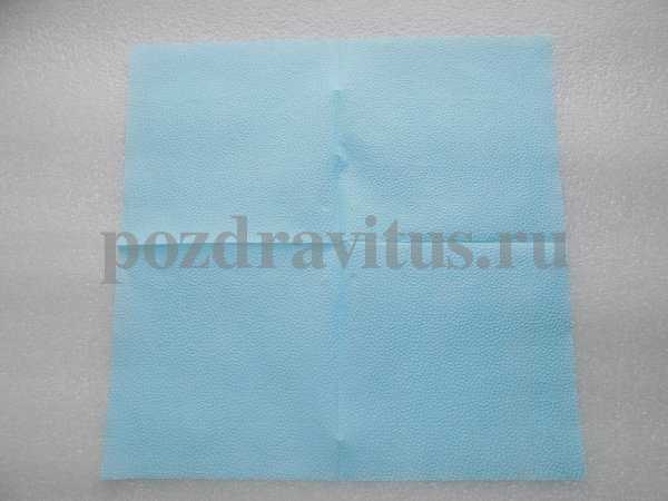 - Сложите салфетку два раза и положите на стол. Открытые края должны смотреть вверх.