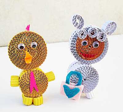 Забавного цыпленка или маленькую симпатичную овечку. Они изготавливаются из нескольких мотков узких гофрокартонных лент.