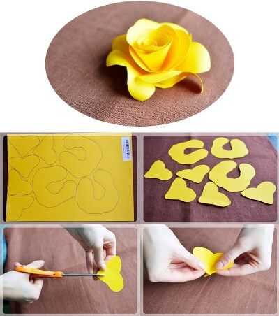 Вырежьте огромные лепестки, прикрепите их с наружной стороны. В итоге у вас получится гигантская роза, к которой нужно приделать прочную ножку. Такие огромные цветы установите отдельно в помещении или офисе, либо создайте композицию из букета.