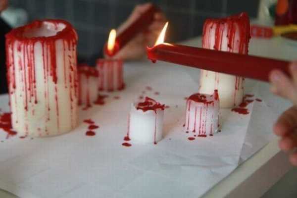 Не упустите из внимания, как декорации праздничного стола, так и вид самих угощений. Постелите на стол черную или серую с пятнами «крови» скатерть. Расставьте свечи в старинных высоких подсвечниках или стеклянных бутылках от спиртного. Разбросайте по столу игрушечных пауков, крыс и мармеладных червяков. Не используйте яркую посуду. Пусть акцент придется на украшения блюд. Продумайте подачу каждого угощения, добавив в него немного из фильмов ужасов.