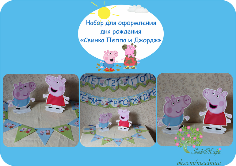 Также можно использовать логотип “Свинки Пеппы” (лужицу) со своей надписью.