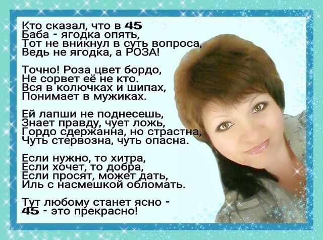 Поздравление 45 баба ягодка опять прикольные короткие.